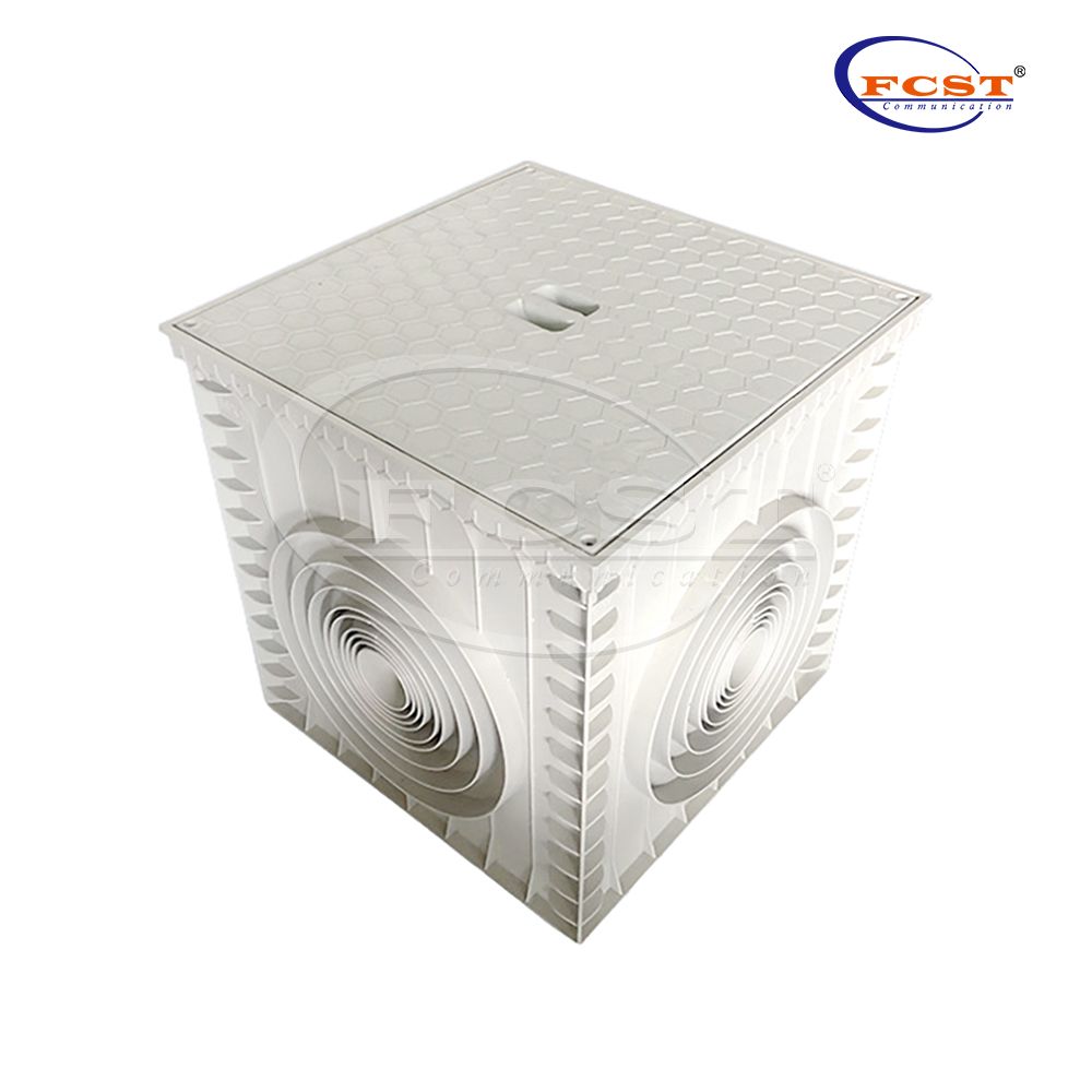 FCST-th-SMC11 Cámara de agujero de mano de la serie para la instalación del piso. Tiene una cubierta ciega y cuatro agujeros perforados para la conexión de tuberías. Ideal para drenaje de agua, tanto en interiores como al aire libre. Material de excelente calidad y muy robusto.
